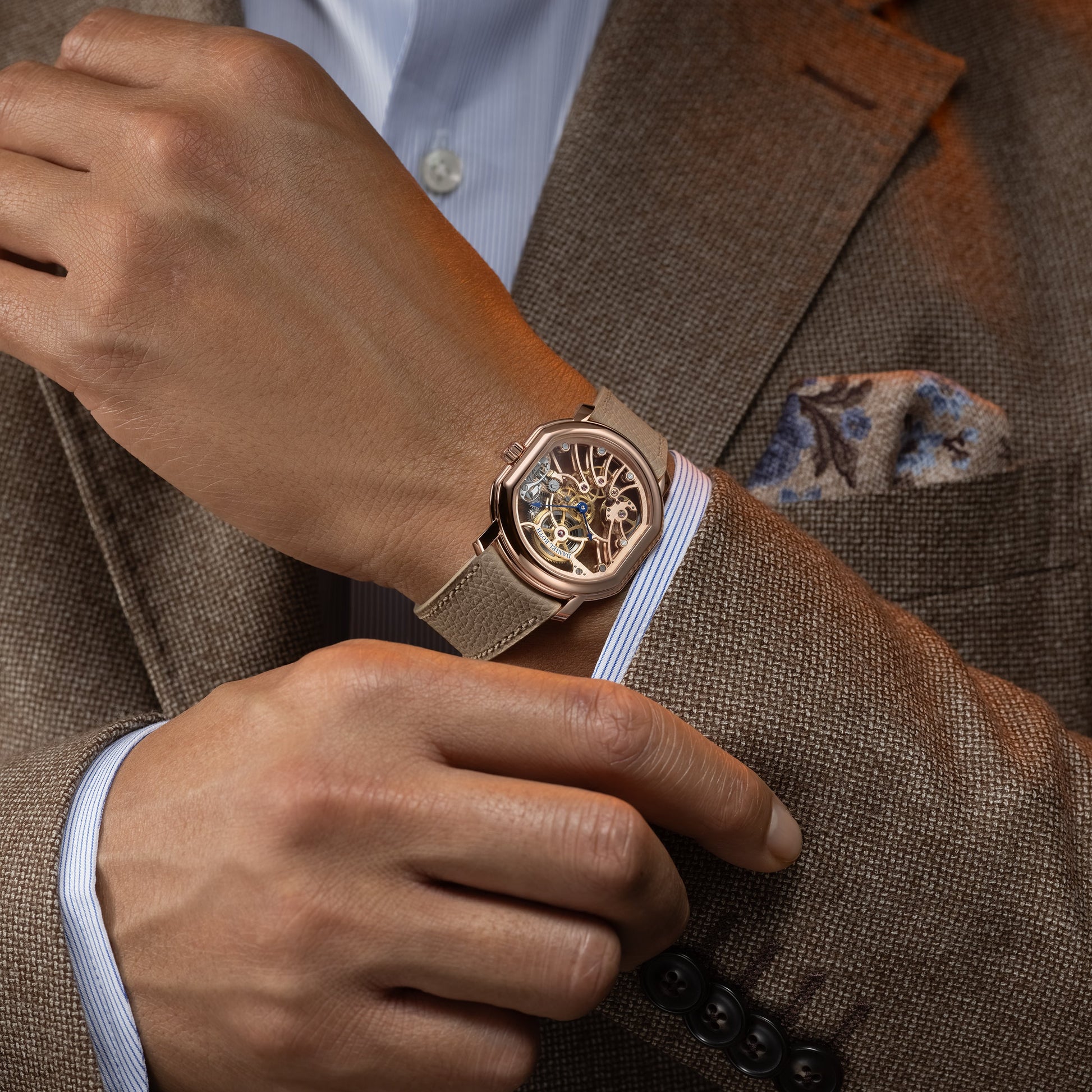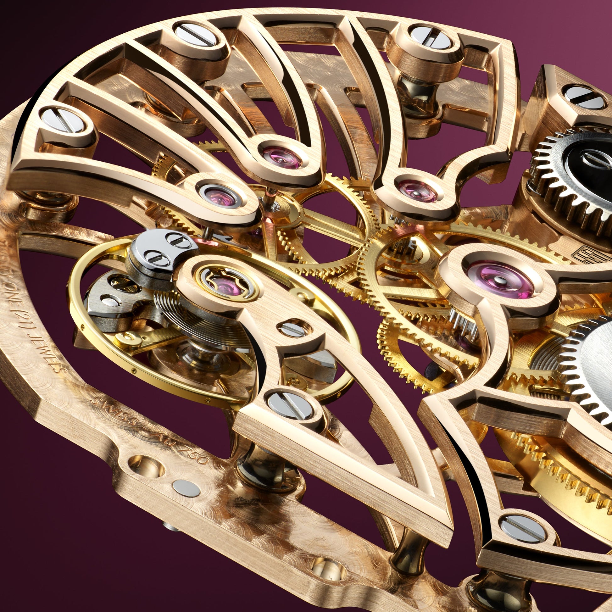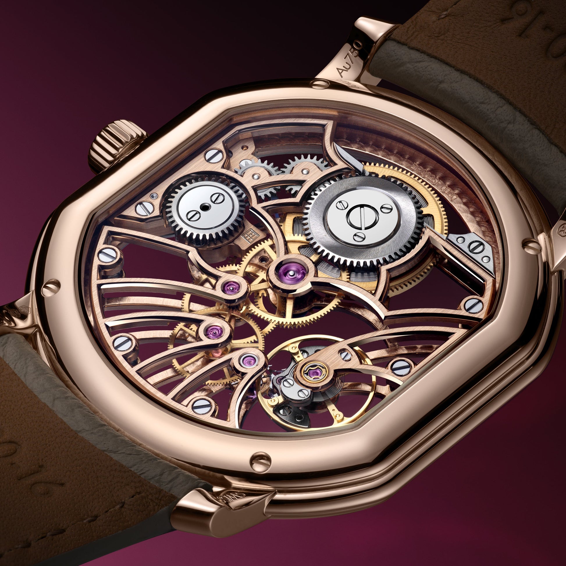 - A new, skeletonized movement conceived from the ground up, embracing the purest form of watchmaking.