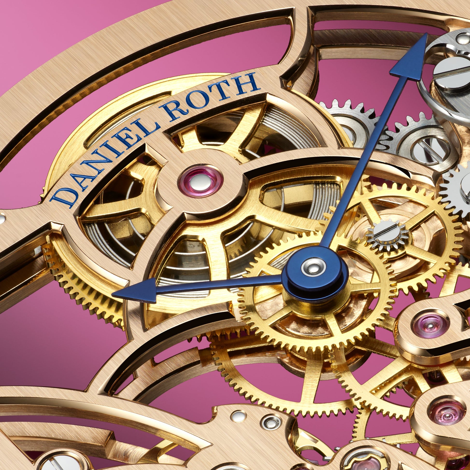 While firmly grounded in the brand's historical vocabulary, the Extra Plat Rose Gold Skeleton is the first step in the revival of DANIEL ROTH, moving beyond faithful reinterpretation, as the Extra Plat was never skeletonized during the brand's founding era by Mr. Roth.