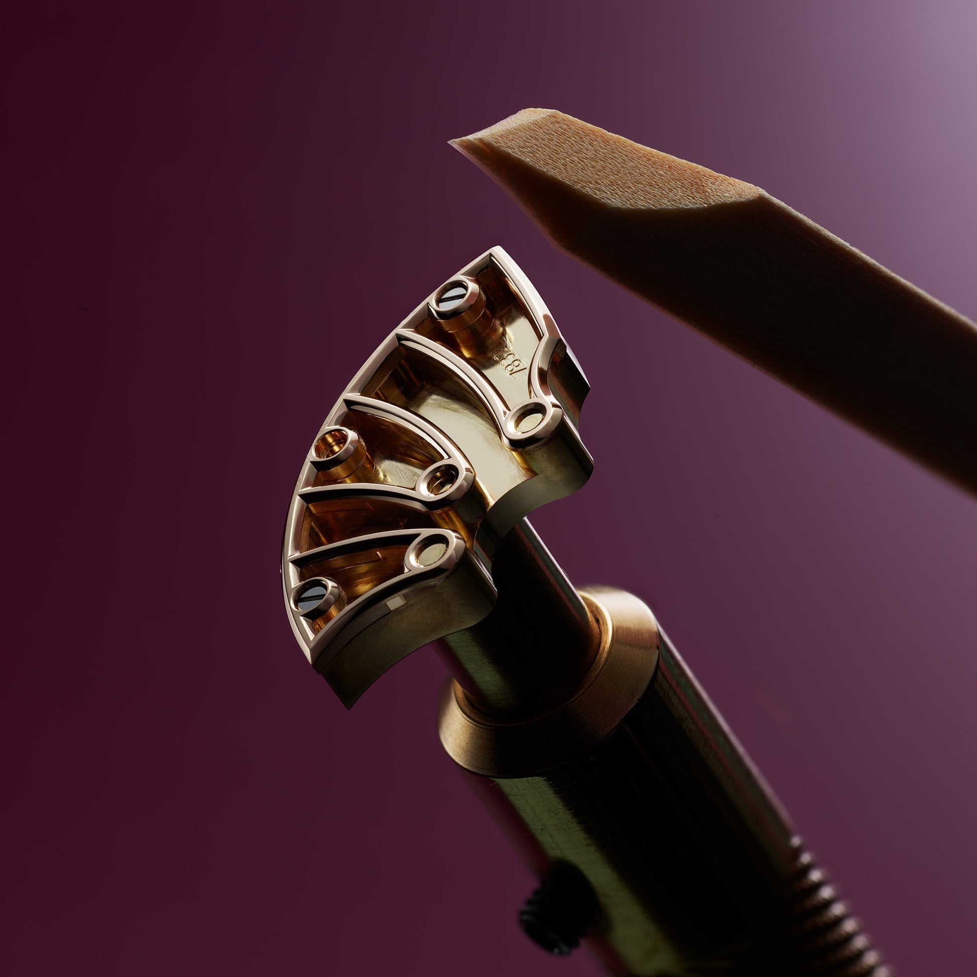 “The decision to craft the bridges and plates in solid gold was both technical and aesthetic,” adds Enrico Barbasini. “Gold is a noble metal that responds beautifully to traditional finishing. It allows the handwork to speak clearly, which is essential in a skeletonised movement.”